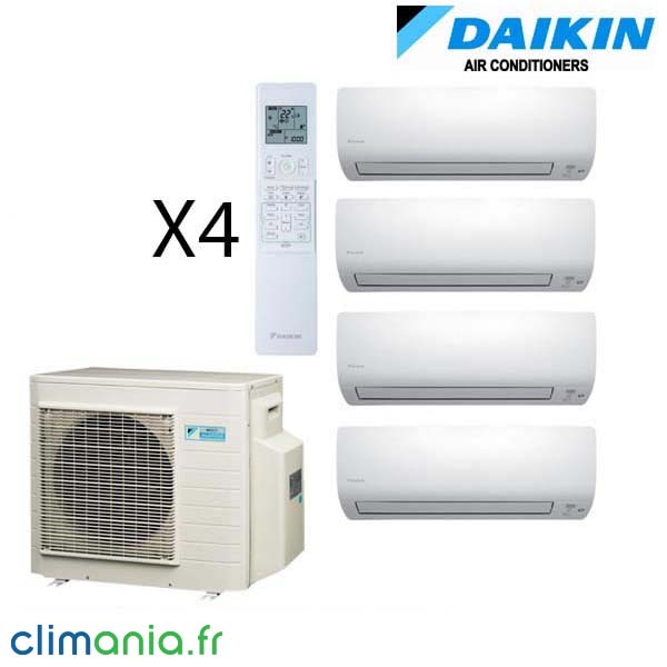 Daikin Quadri-split 5MXS90E + 2 FTXS20K + 1 FTXS25K + 1 FTXS35K .Pour un confort optimal et fonctionnel, la gamme CTXS/FTXS-K est fournie avec une télécommande simple d’utilisation. Développée avec la même attention que son unité intérieure, la télécommande aborde un design simple et épuré.